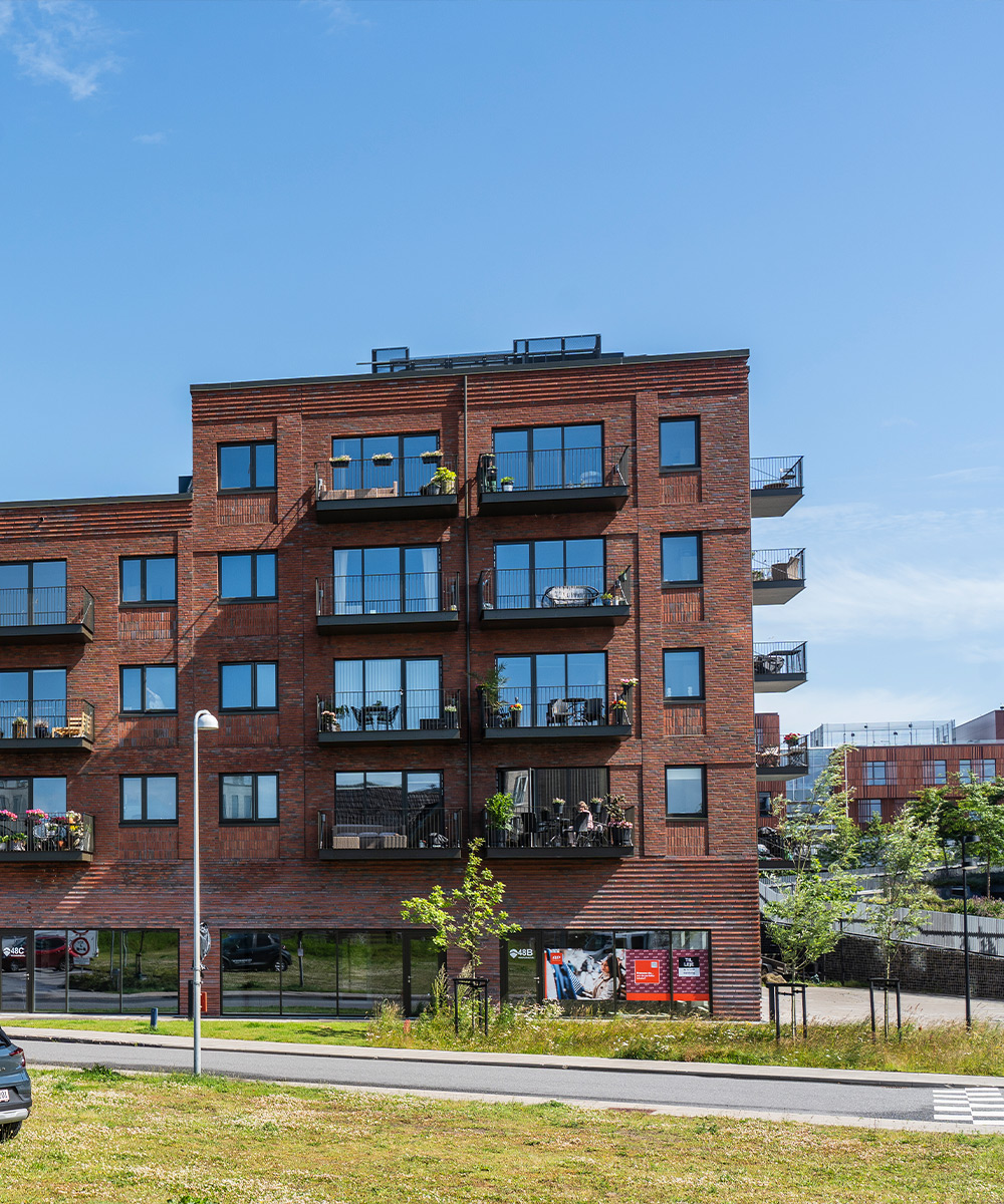 De store erhvervslokaler i stuen lægger op til fitnesscenter og caféliv, der trækker folk til den nye, spændende bydel.